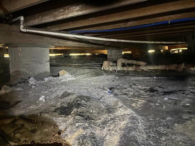 This homeowner reached out to us because their subfloors were swelling with moisture, which had caused their floors to bulge to a dangerous degree. If you take a look at the before picture our team captured, we're sure you may be able to tell why! That old vapor barrier just simply did not stand the test of time. Just a standard vapor barrier already isn't enough to fully protect against moisture, and it didn't help that this was one was torn and almost swallowed in mud/dirt. Lots of areas were still exposed for moisture to create an issue, and we came with the goal in mind to hit each and everyone of those problematic areas. Check out the massive difference our Encapsulation system made!