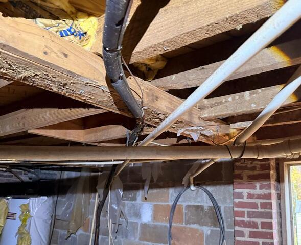 This customer was not even able to use their dining room because their floors were sinking so bad due to excessive moisture in their crawlspace. We were able to assist this customer in finding a good contractor to replace their floors. Once they were completed we came in with an encapsulation system to reduce moisture to ensure they never have this problem again!