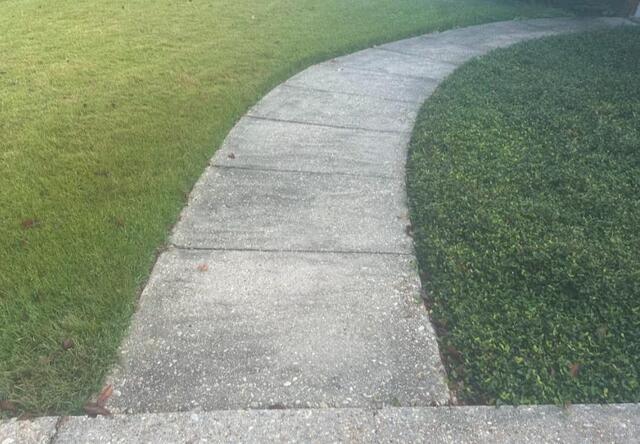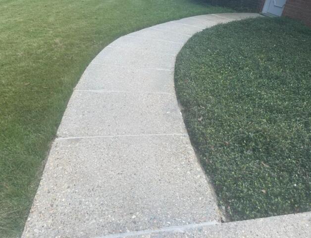 The first thing you might notice about these two images is how much cleaner these slabs of concrete look, but that is not all that has changed! You may notice the grooves and gaps between each slab look a little different too. They have all been sealed with our product, NexusPro, a high quality and durable concrete sealant. Doing this will help keep moisture away from sinking under the slab, leading to a problem we unfortunately come across a lot - erosion and settlement. NexusPro being as resistant against moisture, harsh weather, and UV-rays as it is, will make sure this is not a worry for these homeowners!