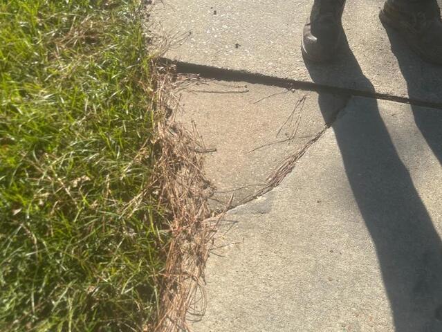 You can see the previous attempts by the homeowner to deal with this large crack in this concrete sidewalk. Fortunately, he eventually found our company and we were able to provide a permanent solution. Our NexusPro system will keep water from entering the crack and causing settlement problems for a long time to come, due to its flexibility and UV-resistance.