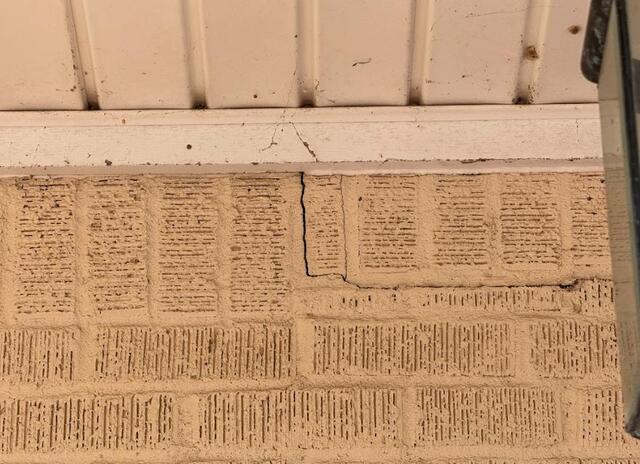 Here is an example of the result our foundation stabilization system had on this home in Brandon. Our goal is to stabilize homes and prevent any further settlement, but as you can see here, sometimes we can achieve some significant lift! Our precise and talented crew lifted this home the perfect amount: enough to show improvement, but not too far that the home is put at risk of other issues. The large crack on the side of this home is looking a lot better and has no chance of spreading.